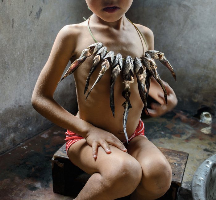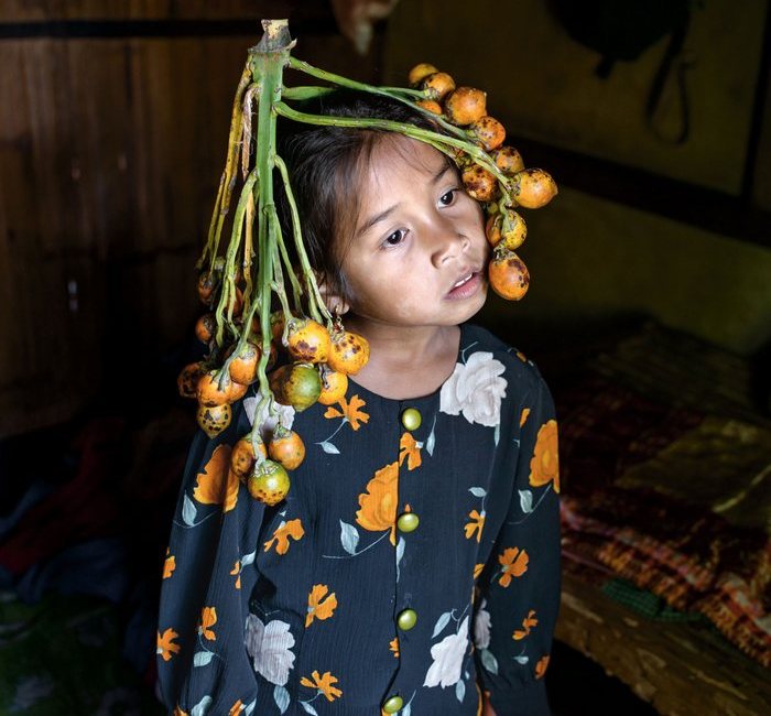 Каролин Клюппель решила увековечить традиции кхаси и создала целую фотогалерею Королевство Девочек, которая отображает повседневное окружение и культуру женщин Маулиннонга. На фото можно увидеть девочку, которая использует устройство для сушки рыбы в качестве ожерелья.