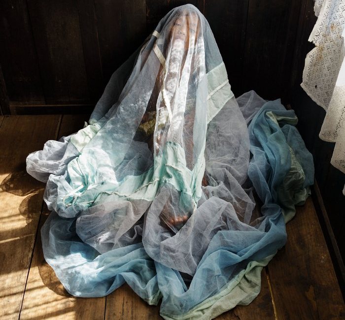 Восьмилетняя Ибапинтген Кхонджи прячется в москитной сетке. Большинство времени здешние девочки ведут себя, как настоящие взрослые рассудительные люди. Но в свободное время они превращаются в беззаботных детей, которые резвятся в речке, ловят рыбу и просто веселятся.