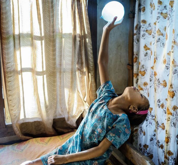 Старшая из трех братьев и сестер, девятилетняя Фида Нонгрум, играет с воздушным шариком в своей спальне. Однажды ее младшая сестра станет главой всей семьи.