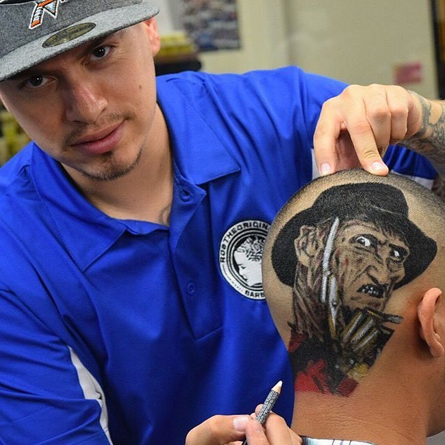 Владелец собственного салона «Rob» из Сан-Антонио открыл в себе этот талант 8 лет назад, когда юный клиент попросил его сделать на голове небольшой завиток. Затем Роб стал «рисовать» на головах клиентов звёзды и символы, потом более сложные изображения, логотипы, а затем решил создать нечто более сложное, начав изображать портреты. С тех пор, он значительно усовершенствовал своё мастерство, и теперь достаточно просто показать фотографию нужного портрета, чтобы Роб воспроизвёл её на голове с помощью ножниц и триммера.